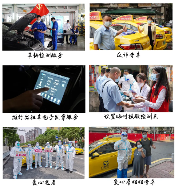 走进海珠湖捡拾烟蒂、果皮、纸巾等垃圾,并向来往的市民派发宣传单张,宣传垃圾分类相关知识;前往属地社区整理道路乱停乱放的共享单车,清扫附近停车场的垃圾,以实际行动发扬了无私奉献精神;设置服务点,免费为330名出租车驾驶员提供了体检服务,重点检查驾驶员的慢性疾病健康问题,邀请医院专家开展“科学防治慢性疾病知识”讲座,进一步增强驾驶员健康防护意识;与终端设备商合作进行软计价终端电子发票试点,推出出租车电子发票服务,惠及市民乘客出行;在维修中心门口设置服务点,免费为周边群众、职工提供车辆检测及技术咨询服务;携手广州爱尔眼科医院开展义诊公益活动,组织驾驶员免费进行眼部检测;与白云区司法局共建“白云区普法宣传阵地”,以党员示范车为主打造“反诈专车”,充分发挥巡游出租车的经营特性宣传普及反诈骗知识;按上级要求针对交通行业驾驶员群体在广骏大院设置临时核酸检测点,火速组织广骏公司党员突击队配合医护人员开展核酸检测工作,两天时间共检测6133人;派出300台出租车为疫情管控区域考生提供“一对一”“点对点”接送服务,高考期间共服务考生303人、3164车次,实现零失误护送;派出20辆出租车和24位驾驶员组建“爱心孕妈妈”车队,解决疫情期间管控区内孕妇的就医问题,切实将党史学习教育成果转化为“我为群众办实事”实际行动。