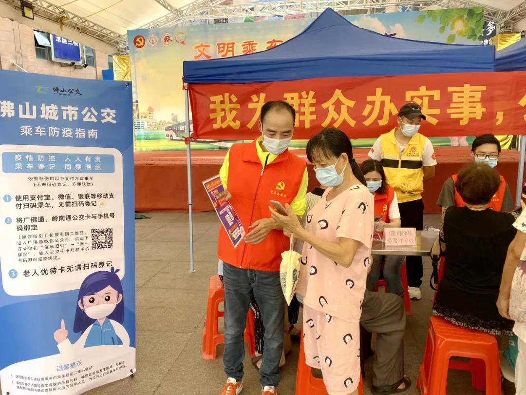 为保障老年人“刷卡识码”服务有效落实,加大宣传力度,让更多老年人知道这项便民举措,6月19至20日,佛山粤运公交联合佛山市公共交通管理有限公司禅城分公司组织6名党员志愿者分别在岭南大道公交枢纽站、普君新城广场开展“我为群众办实事,公交服务进社区”活动,向老年人宣传“刷卡识码”功能。