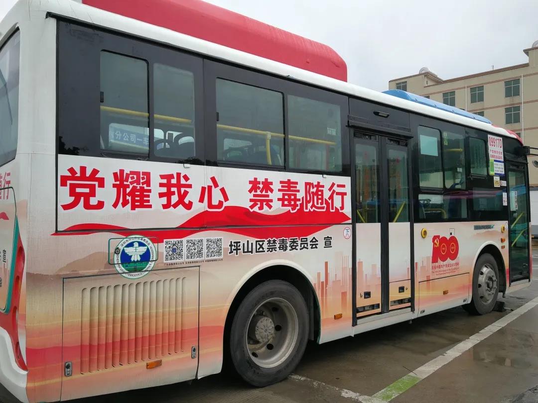 “禁毒巴士”在978、941、M575、M296、M575等5条线路上,各选取1台车辆,共计5辆公交车,日常营运路线贯穿坪山区6个街道。