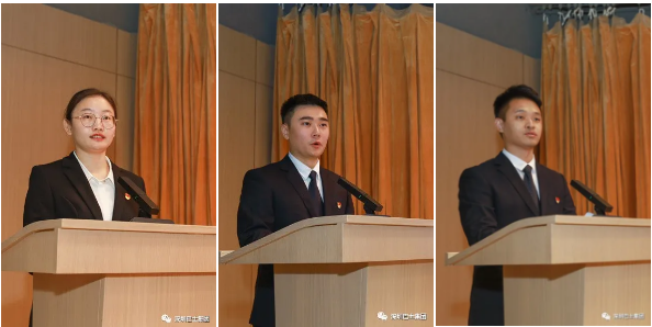 3名预备党员代表上台发言,讲述他们积极向党组织靠拢的心路历程,铿锵地表达了“坚定不移听党话,矢志不渝跟党走”的思想自觉,坚定对马克思主义的信仰,对社会主义和共产主义的信念。