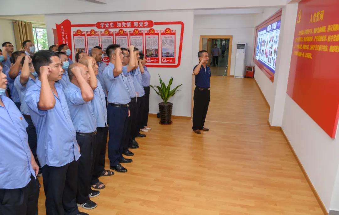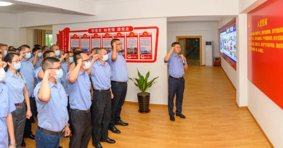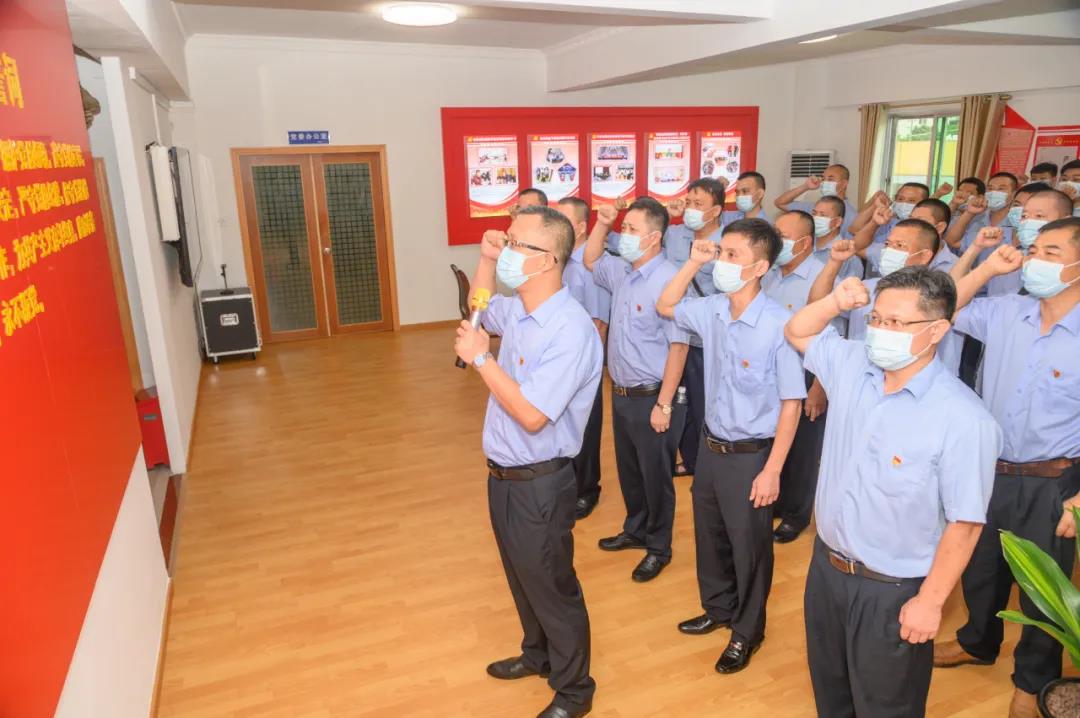 最后,全体党员分批在区海棠同志、冯敬佳同志和周九进同志的带领下进行庄严宣誓。党员们整齐排列,高举右手,面向党旗,铿锵有力地宣读誓词,一字一句,神圣而豪迈,铮铮誓言,让现场每一位党员都接受了一次深刻的党性教育和灵魂洗礼。