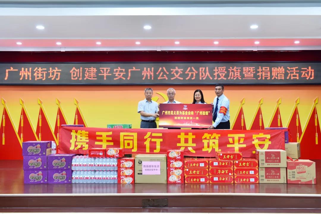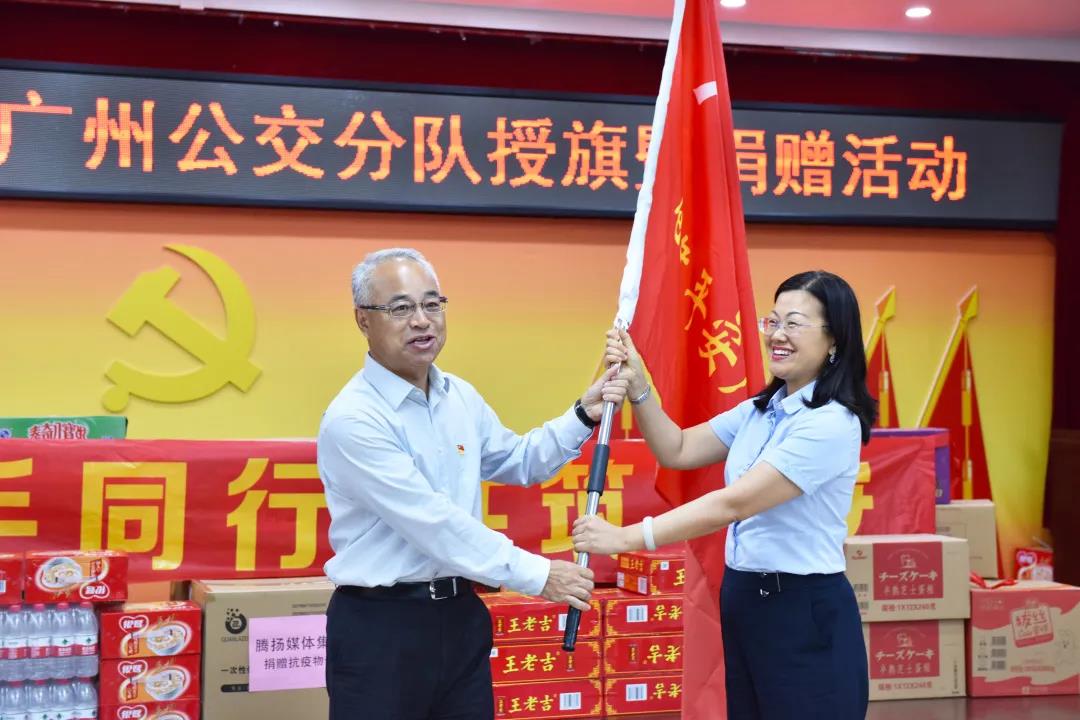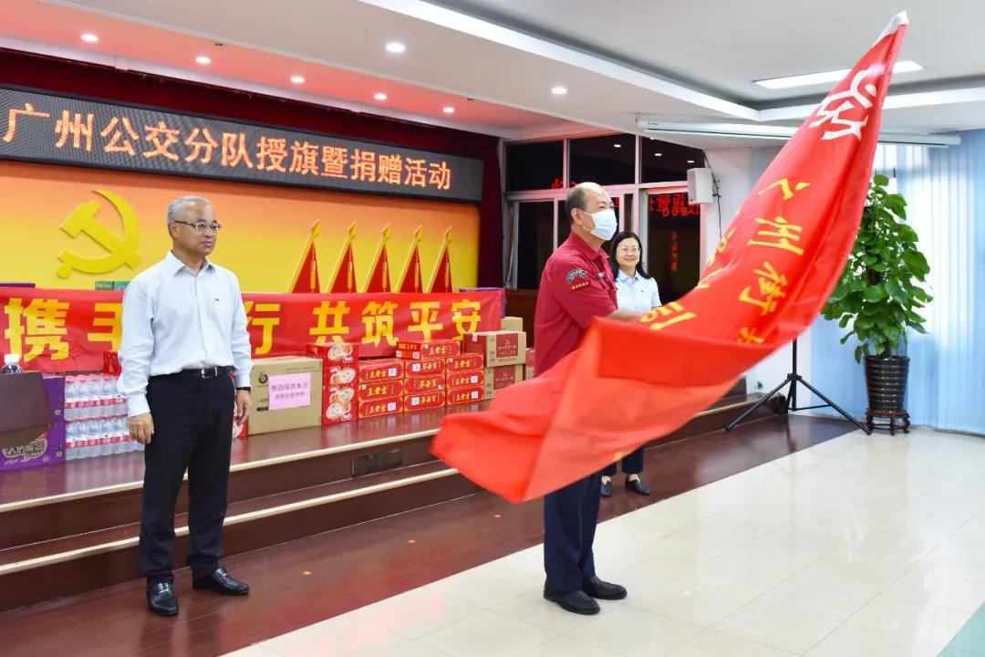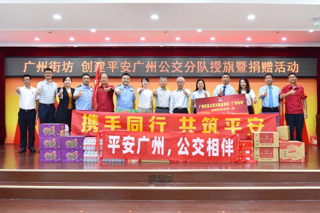 为进一步发挥“广州街坊”品牌效应,推动城市安全风险联防联控、群防共治,营造庆祝建党100周年平安和谐的社会环境,7月1日下午,广州市委政法委、市公安局、市公交集团、市见义勇为基金会联合举办“广州街坊·司机大哥”授旗暨捐赠活动,市委政法委常务副书记邓中文向市公交集团授予“广州街坊”队旗,市见义勇为基金会向该队伍捐赠防疫物资。