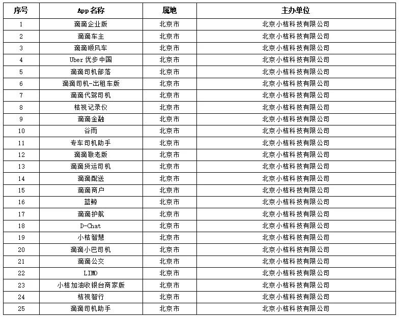 根据举报,经检测核实,“滴滴企业版”等25款App(列表附后)存在严重违法违规收集使用个人信息问题。国家互联网信息办公室依据《中华人民共和国网络安全法》相关规定,通知应用商店下架上述25款App,要求相关运营者严格按照法律要求,参照国家有关标准,认真整改存在的问题,切实保障广大用户个人信息安全。各网站、平台不得为“滴滴出行”和“滴滴企业版”等上述25款已在应用商店下架的App提供访问和下载服务。