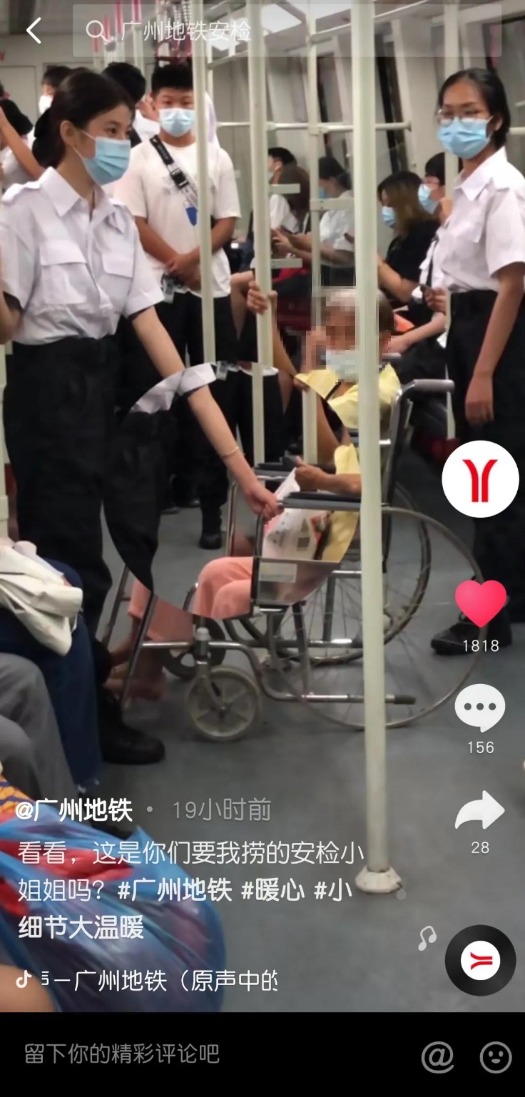 该抖音视频发布后,不少网友纷纷点赞评论:“有爱心的人最美,广州地铁的服务是真的好。”“捕获一枚人美心善的地铁小天使。”
