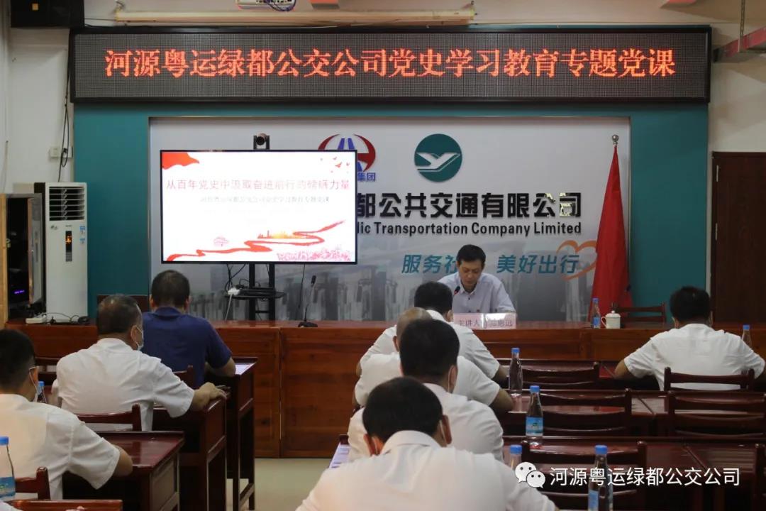 2021年7月9日上午,粤运交通党委委员、副总经理郑思远到河源粤运绿都公交公司上党课。党课由河源粤运党委副书记、纪委书记朱伯根主持,河源粤运领导班子成员、市粤运绿都公交公司党支部全体党员共30人参加了党课学习。
