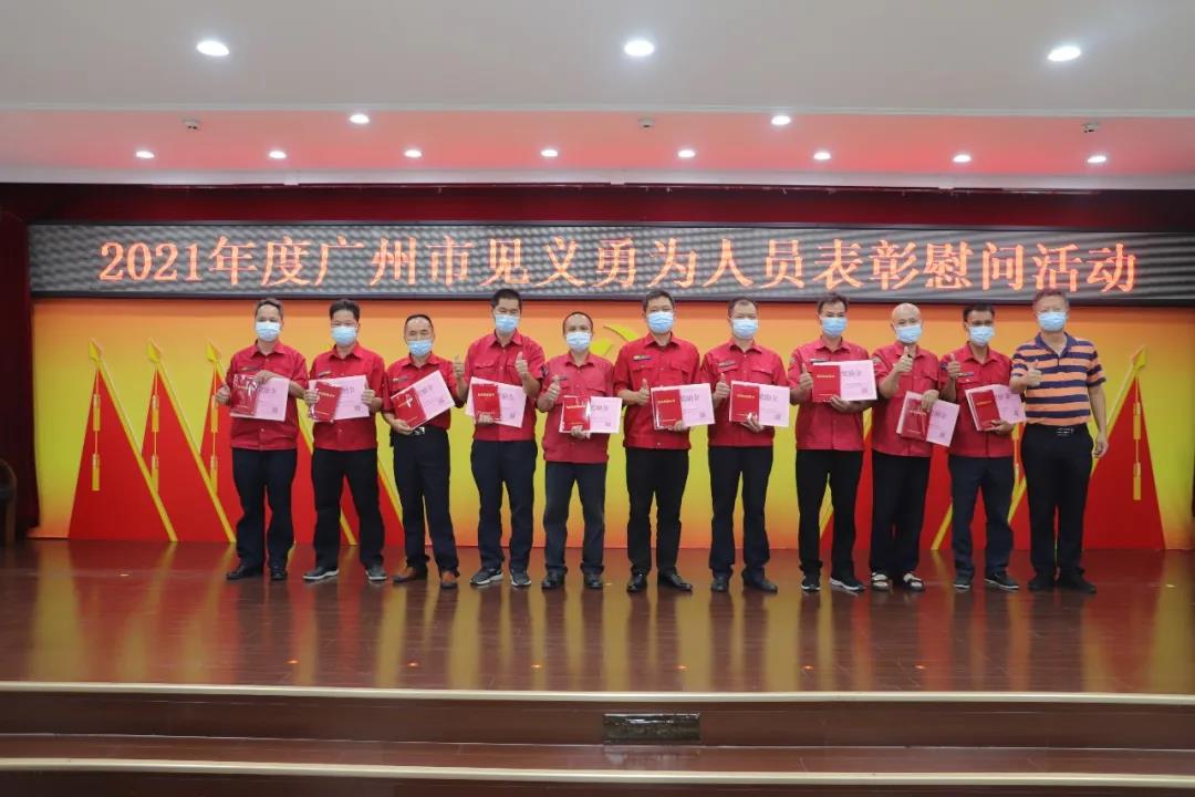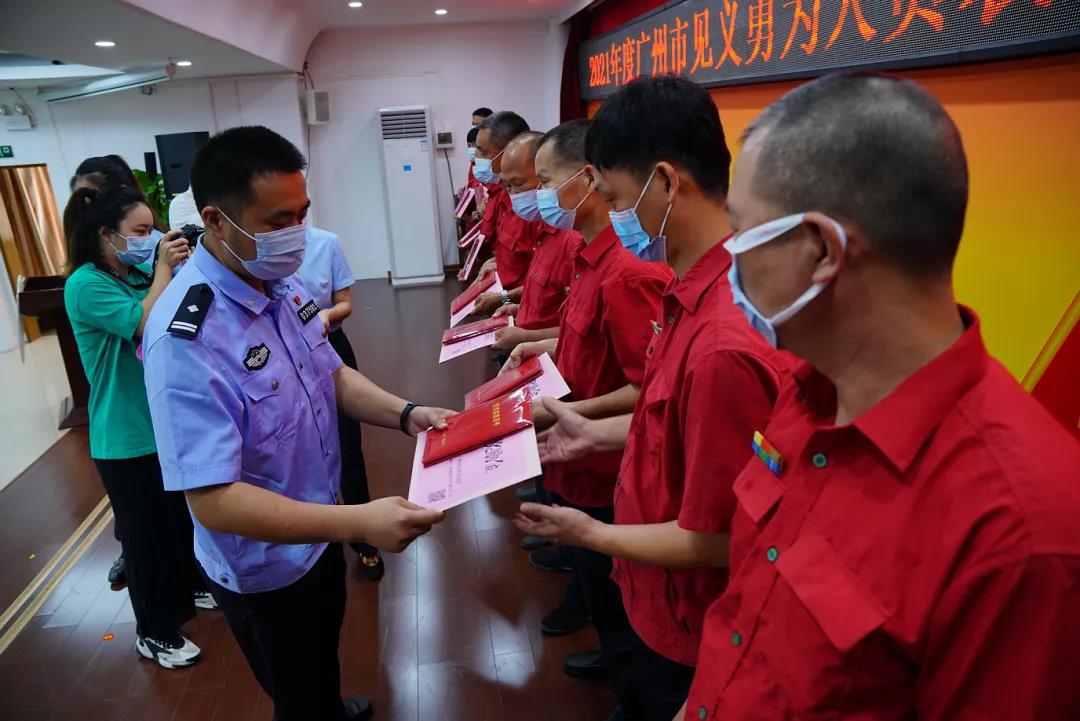 广州市见义勇为基金会理事长蔡巍为见义勇为人员颁发证书及慰问金