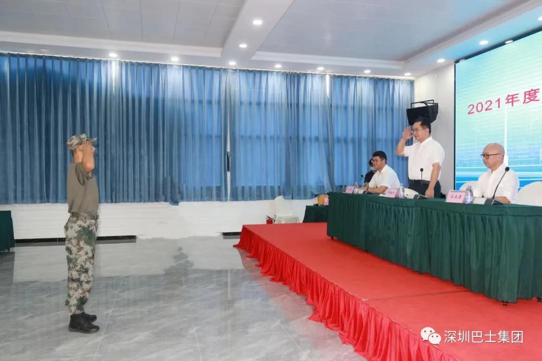 接着,由学员代表廖建伟带领全体学员庄严宣誓:在2021年度巴士集团军训教官队特训中,要做到服从命令,听从指挥,尊重教官,刻苦训练,恪守纪律,不怕困难,争做巴士集团优秀军训教官,为集团全员军训贡献力量!