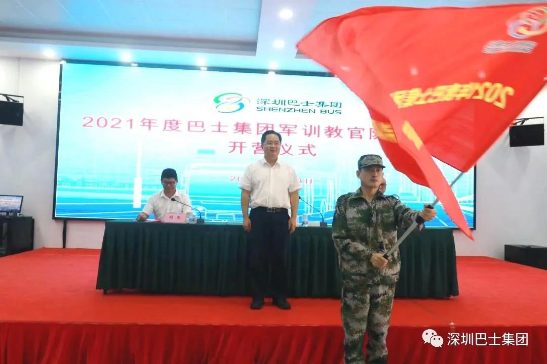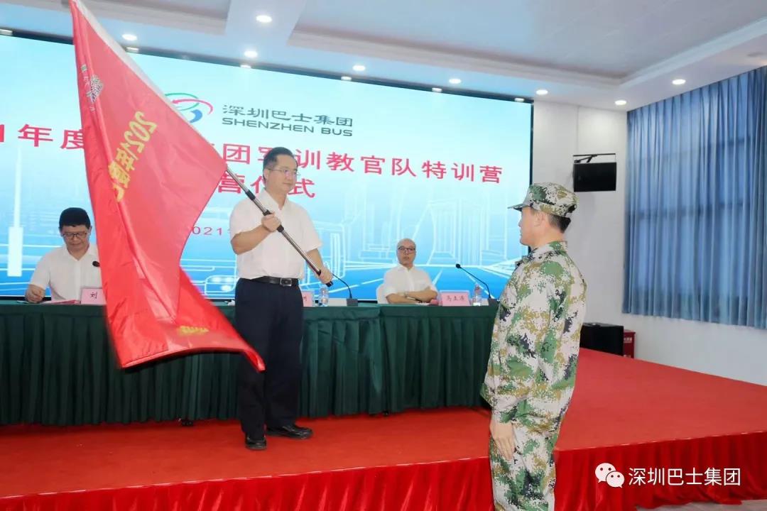 最后,顾楠洲总经理为培训学员代表授旗,并宣布“2021年度巴士集团军训教官队特训营”正式开营。