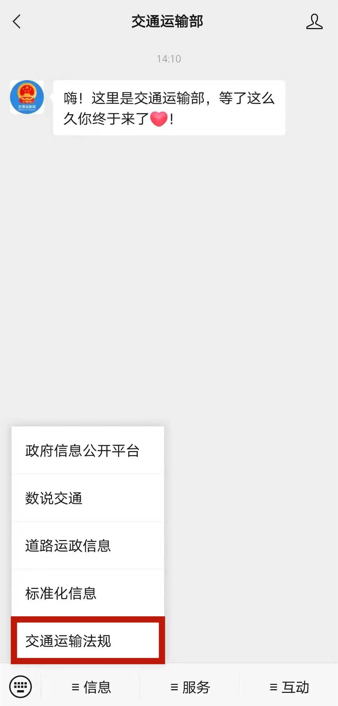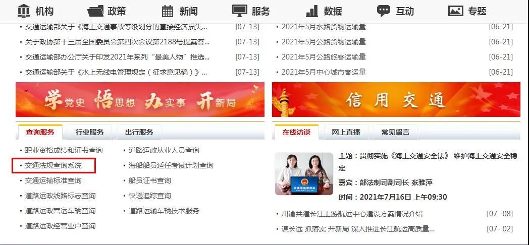 登录交通运输部官方网站,找到【交通法规查询系统】,点击进入。