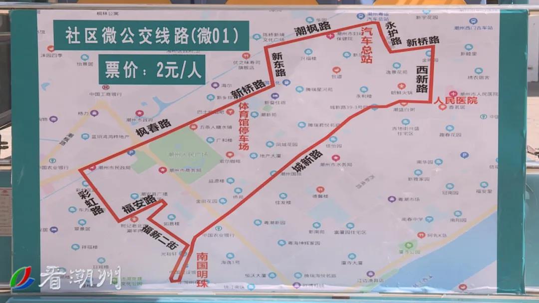 潮州市粤运公交公司开通试运营“微01社区公交线”,线路始发站点为“粤运汽车总站”,途经新桥路、西新路、城新路、福安路、彩虹路、新东路等路段。“微公交”为14座的电瓶车,身板小,开行灵活,吸引市民尝鲜体验。