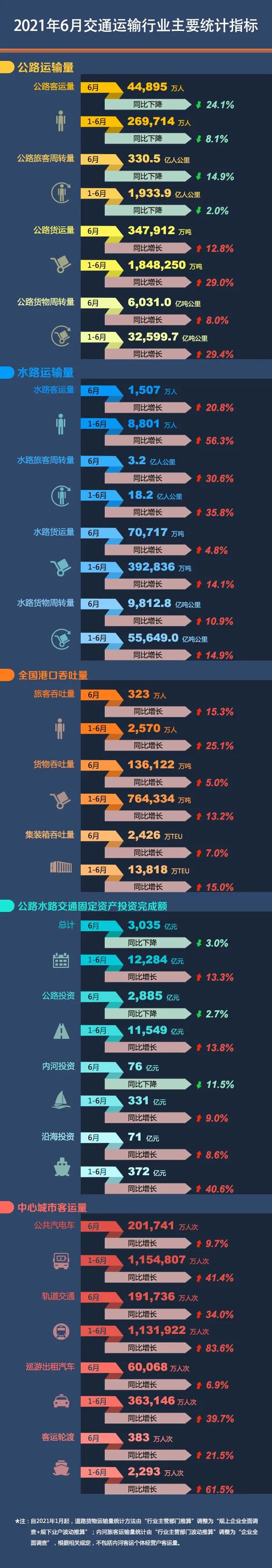 2021年6月交通运输行业主要统计指标