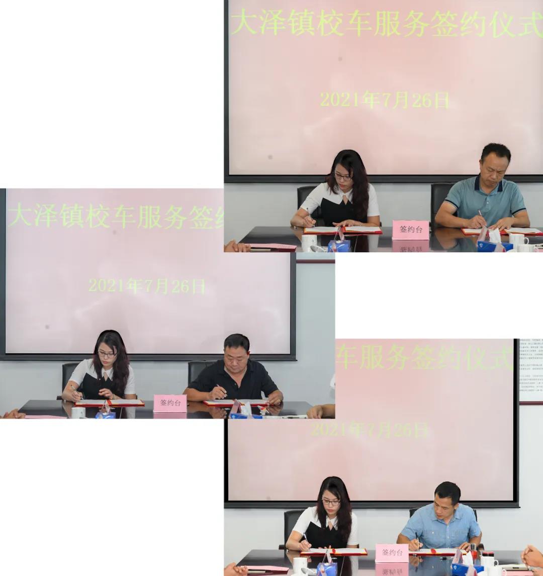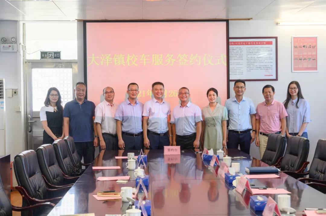百年大计,教育为本。大泽镇委、镇政府一直以来都把学生上下学交通安全放在最重要的位置,今年4月,将“引入安全可靠的校车服务”项目列入 “我为群众办实事”实践活动,切实让党史学习教育走深走实,让党史学习教育成果惠及群众。7月26日,大泽镇与江汽运校车蓬江分公司举行校车服务签约仪式。江门市公共汽车有限公司党委书记、董事长冯敬佳,总经理周九进,大泽镇党委书记宁路庚,党委委员、副镇长钟华仲,党委委员陈晓建以及校车相关工作人员参加了签约仪式。