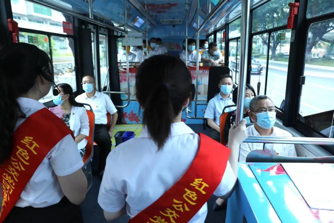 集团党员领导干部搭乘3路“红色公交”前往中共三大会址纪念馆、广州起义纪念馆,在车上聆听“红色公交”党团队讲解员介绍沿途红色经典、讲述红色故事,重温党的光辉历史,深入了解中国共产党带领中国人民取得的伟大胜利成就。