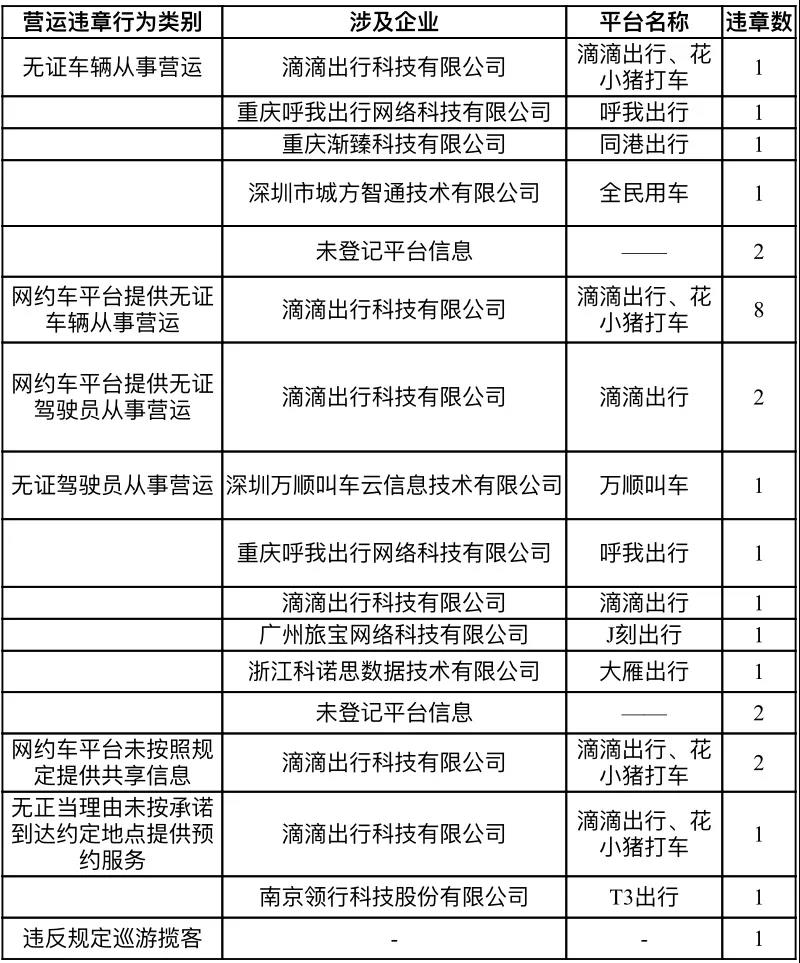 各类营运违章涉及平台总览