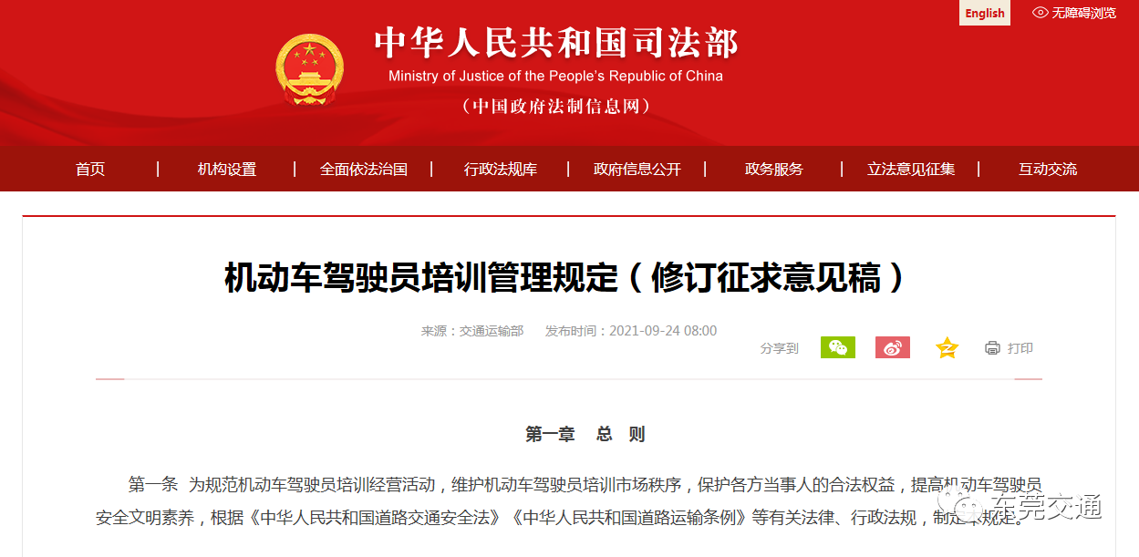 为认真贯彻国务院关于深化“放管服”改革、优化营商环境的决策部署,落实国务院关于机动车驾驶员培训审批制度改革要求,日前,交通运输部起草了《机动车驾驶员培训管理规定(修订征求意见稿)》,推动机动车驾驶培训行业治理体系和治理能力现代化,促进机动车驾驶培训行业高质量发展。