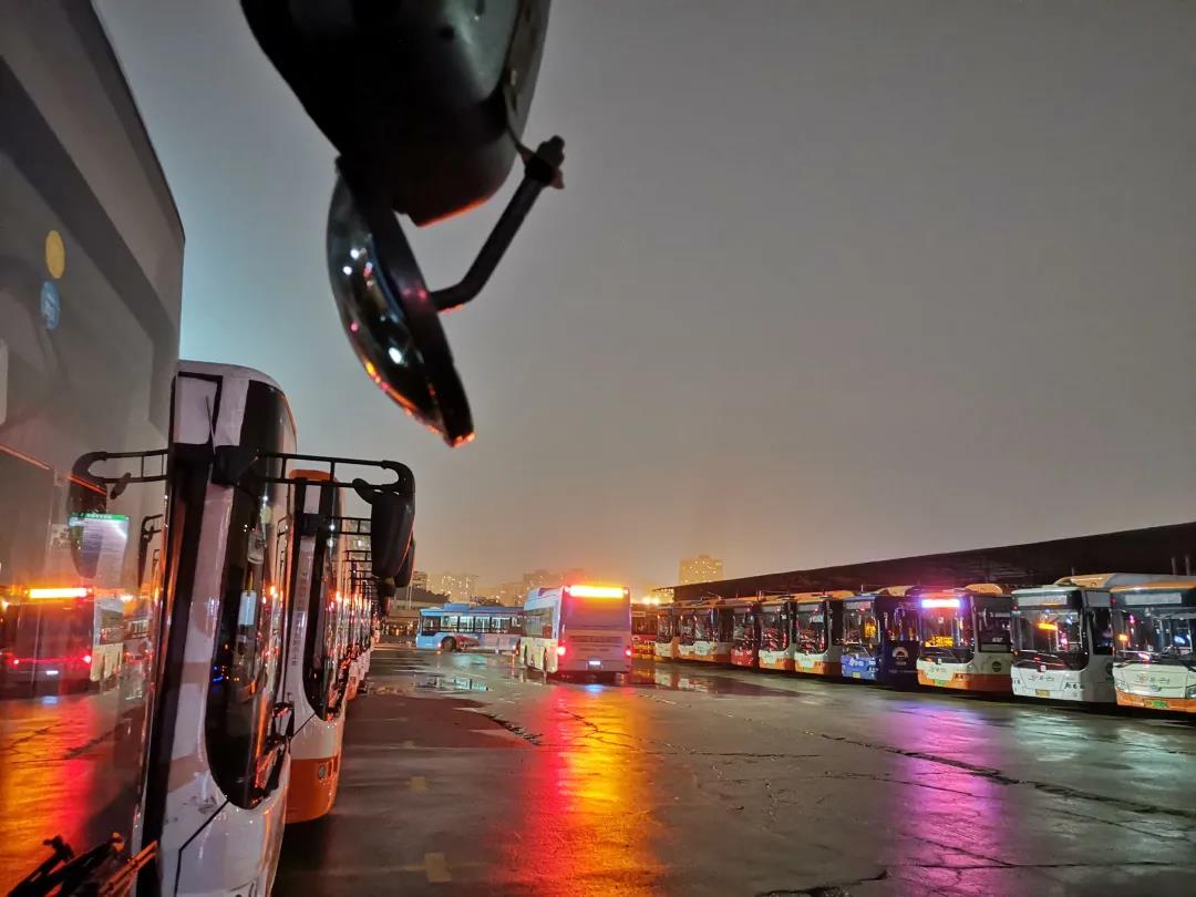 不利的天气,车长执行营运任务时重重受阻,他们逆风而行;为了给乘客营造安全出行,全体车长除了做好日常出车例检以外,特别是对车辆雨刮系统、灯光系统、制动系统加大检查力度,对纯电动车辆的高压电池进行外观防水检查,确保营运车辆符合安全行车标准。