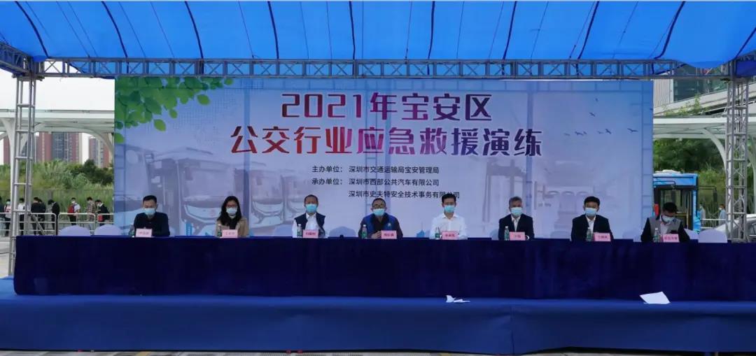 为贯彻落实《中华人民共和国新安全生产法》《中华人民共和国突发事件应对法》等有关规定及要求,完善公司应急预案的应急机制,加强对突发事件处置的综合指挥能力,提高应急救援快速反应和协调水平,最大程度地减少人员伤亡以及财产损失,保障城市公共交通安全,结合公司安全生产工作实际,由深圳市交通运输局宝安管理局主办,深圳市西部公共汽车有限公司、深圳市史夫特安全技术事务有限公司承办的2021年宝安区公交行业应急救援演练活动,于2021年10月22日上午10点在会展车队塘尾场站举办。