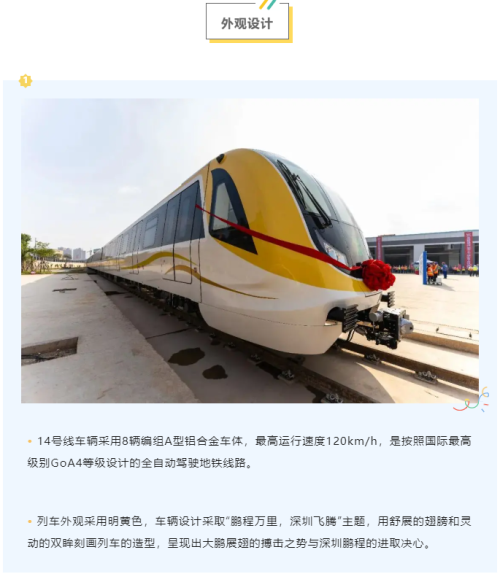 ■ 深圳地铁14号线是深圳市域快线网络中东部首条线路,起始于深圳岗厦北,终于深圳沙田站,全长约50.34km。