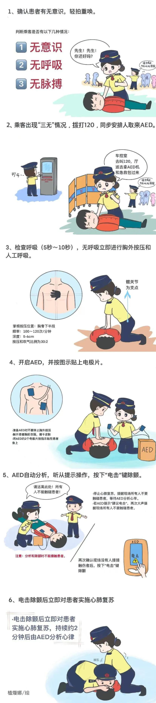 一直以来,广州地铁都十分重视应急技能培训,通过与省市各医院联动,让车站每位员工和广大乘客掌握基础的急救技能,为突发急病的乘客赢得宝贵的时间。同时,广州地铁还通过地铁电视等载体,向乘客普及急救常识和AED的性能特点,积极传播“人人学急救,急救为人人”的理念,提升自救互救能力。