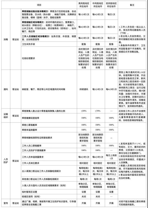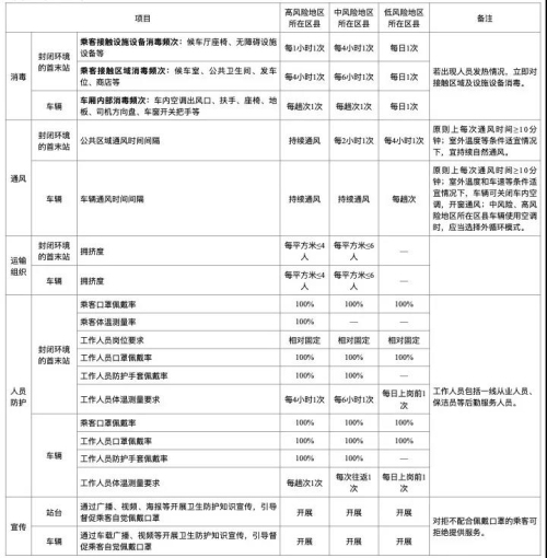 注:1.客运车辆起讫地和中途停靠客运站点所在地风险等级不一致的,按就高原则执行防疫要求。