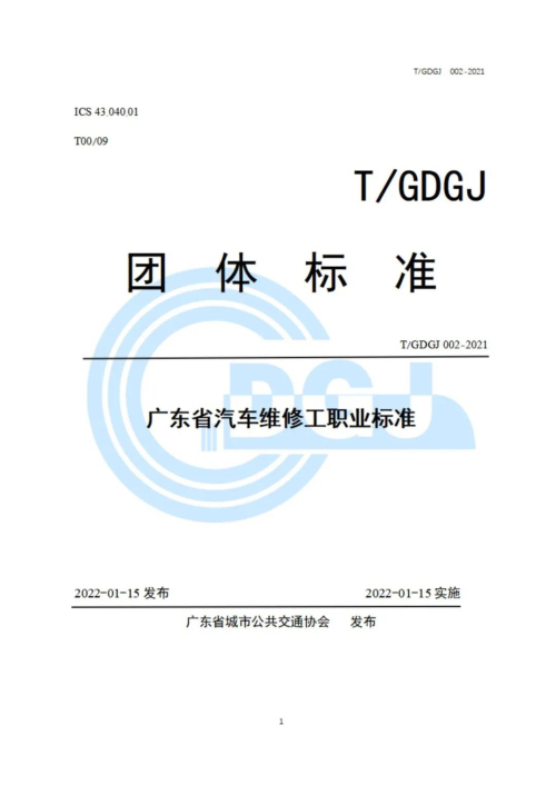 由广州市交通运输职业学校、广州市公共交通集团有限公司主编、宇通客车股份有限公司参编的《广东省汽车维修工职业标准》团体标准于2022 年 1 月 15 日起正式发布实施。