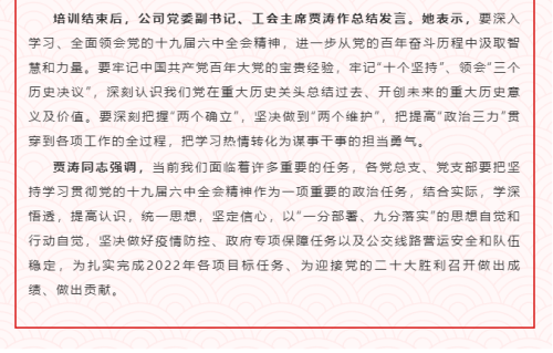 从党的百年奋斗历程中汲取智慧和力量 | 东部公交举办深入学习贯彻党的十九届六中全会精神专题辅导培训