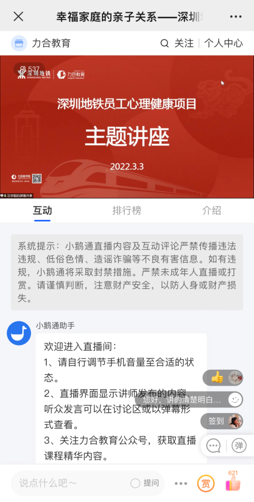 培训课程分为讲授课程和问题解答两部分进行,培训中,专家们从当前疫情环境下的心理空间压力、情绪管理等内容展开,主要向职工介绍了对不良情绪的接纳、转换角度、拓宽视野、封存焦虑等处理方法,同时,对参与线上授课的职工提出的问题进行了详细的解答,帮助职工处理在工作、生活、教育子女等方面情绪管理控制方面遇到的实际问题。