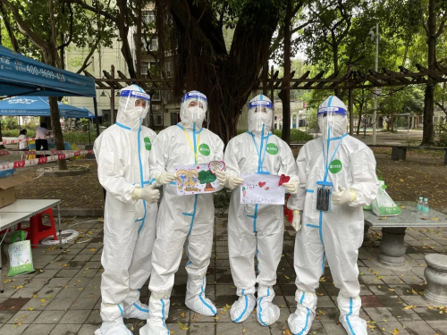 我们这支队伍负责的是福田区沙头街道沙嘴社区和南山区桃园街道12个社区居民的核酸检测、物资配送和防控宣传服务。