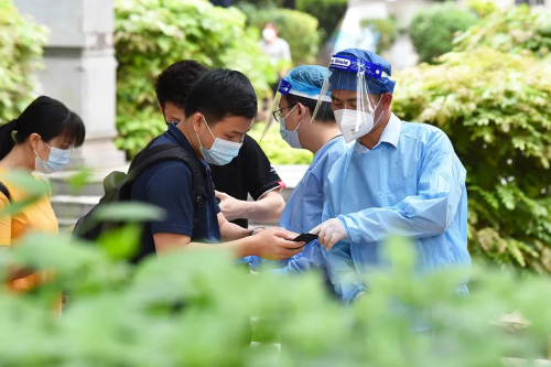 尽管在室外,但隔离服内还是汗水直流,青年“的哥”们与现场工作人员一起,忙前忙后,积极帮前来进行核酸检测的居民绑定个人信息、指引排队、解疑释惑。