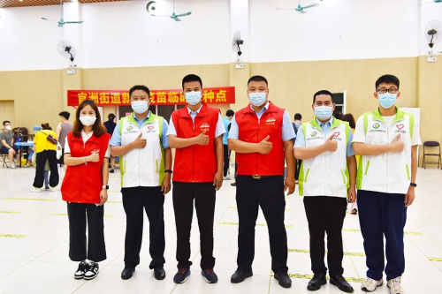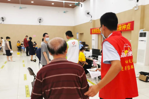 王海超和刘燕京是青年“的哥”,更是共产党员身份,是白云(广交)公司“初心驶者”品牌队伍的成员,他俩带动着在场的青年志愿者“的哥”,以微笑服务乘客的亲切态度,从信息登记、流程指引、秩序维持,积极协助每一位前来接种的居民顺利完成疫苗接种,尤其照顾老人和小孩,无微不至。