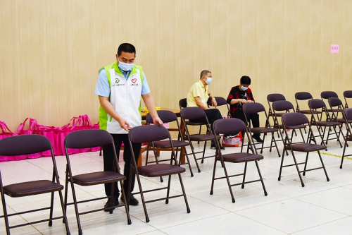 在北山社区疫苗临时接种点,王海超与刘燕京、张超、梁俊阳等青年“的哥”们积极地协助居民进行疫苗接种,确保疫苗接种流程平稳、有序。