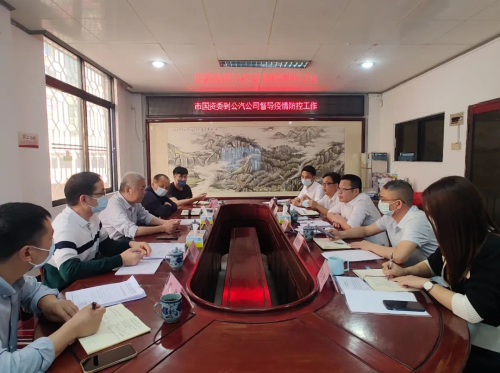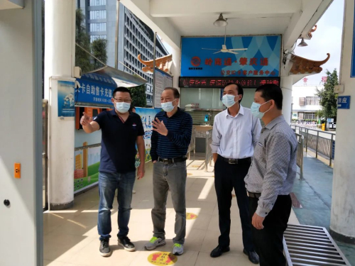 市国资委副主任陈晧(左三)到公汽公司督导防疫工作