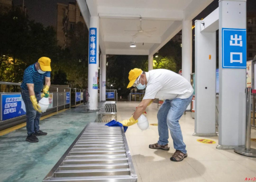 按照交通运输部《客运场站和交通运输工具新冠肺炎疫情分区分级防控指南(第七版)》严格落实公交车、公交场站和办公区域的消杀工作。组织员工成立疫情防控“消毒工作组”,每天凌晨到市区各站场对收班公交车车体、车厢内进行全方位消杀,并建立消毒台账。要求驾驶员全面落实“四个百分百”,抓好车辆消毒、通风等措施,做到“一趟一消毒、一趟一通风”。疫情防控督导小组不定期检查疫情防控工作情况,确保各项防疫措施落实到位。