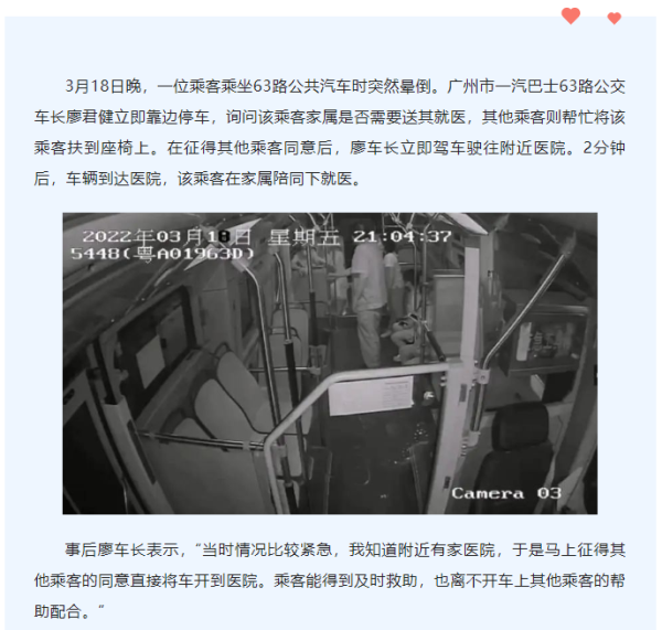 乘客车内晕倒,公交车秒变“救护车”送医