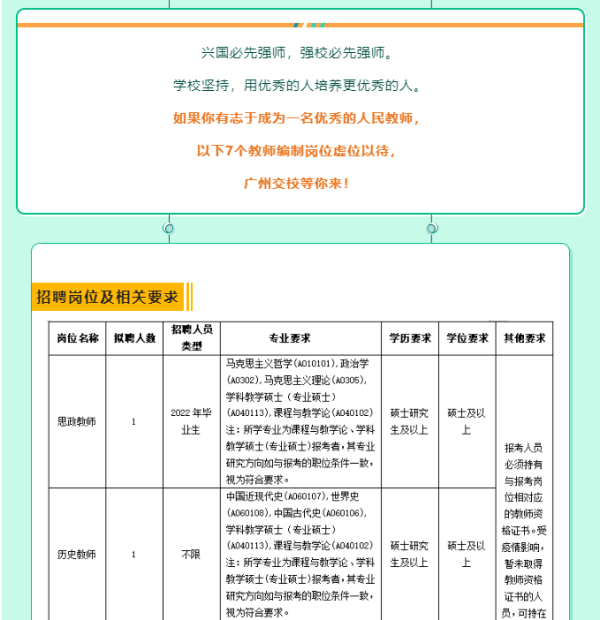 【招聘】广州交校2022年第一波教师招聘,看这篇就全了