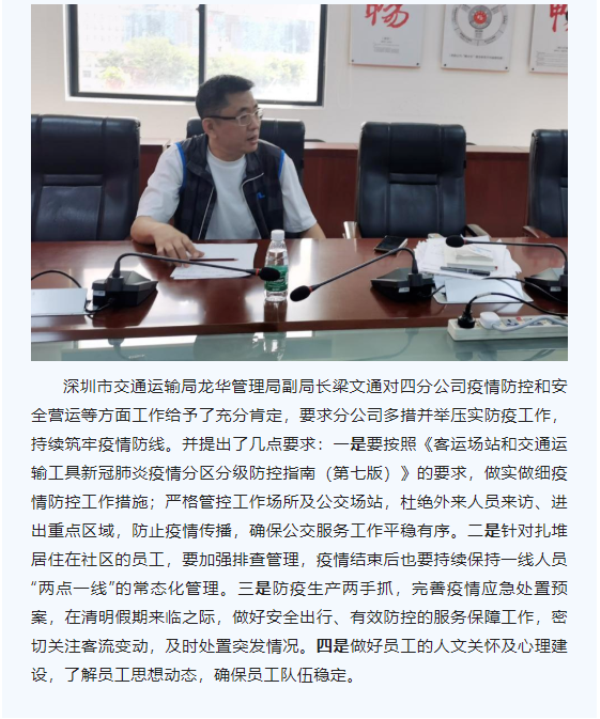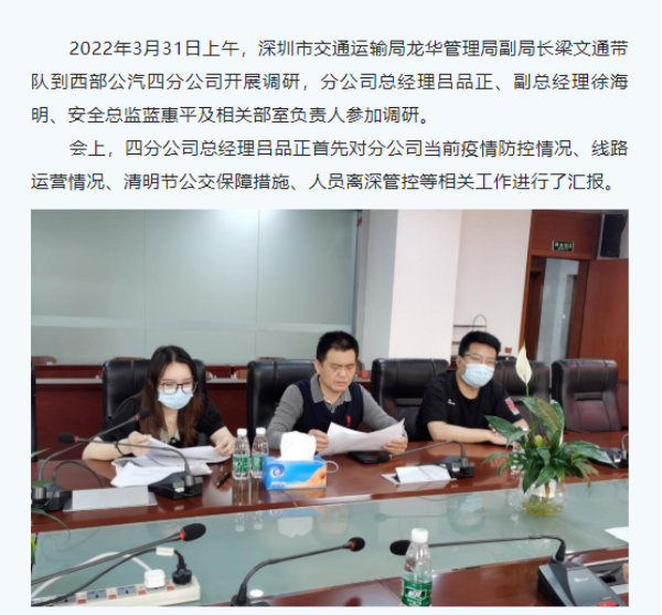 深圳市交通运输局龙华管理局副局长梁文通一行到西部公汽四分公司开展调研