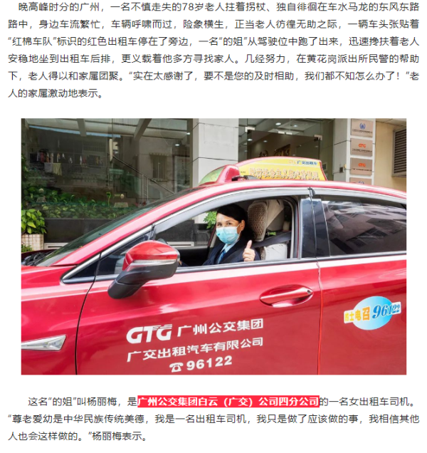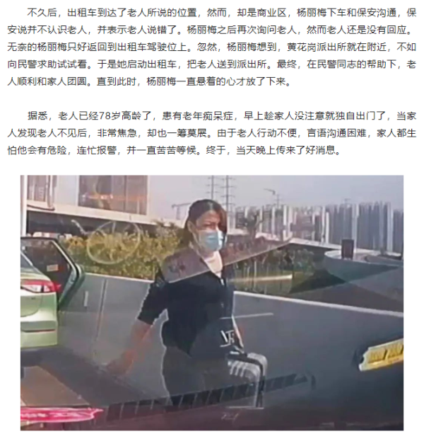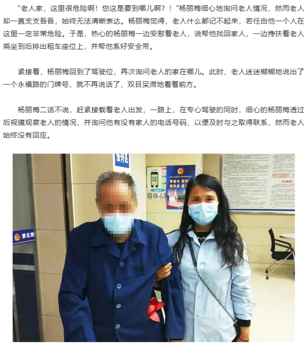 危险!耄耋老人走失繁忙路中!暖心!红棉“的姐”护送寻找家人