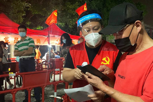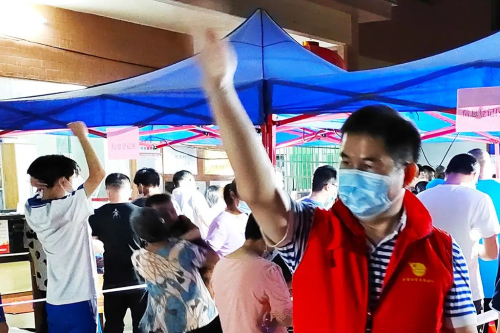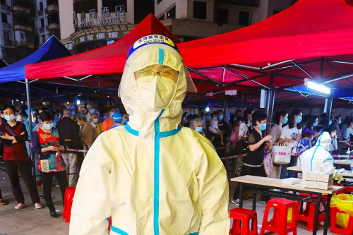 大家或披着鲜红色的马甲,或穿着白色防护服、蓝色隔离服,从上门呼吁市民“落街”做核酸,到现场的秩序维持,从协助测温、扫码登记,到试剂管的分发、搜集,乃至清点、装袋等,每一个岗位上,大家都坚守不懈,每一个环节中,大家都一丝不苟,认真对待。