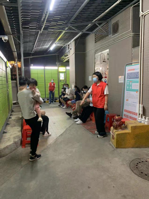 闻令而动,轻伤不下火线4月8日晚,广州市疫情防控形势紧张起来,分公司党支部连夜发出了动员党员回社区支援的号召。本已结束下沉支援的李爱文,看到通知后又第一时间报名参加。4月9日这天,她一早就到岗,协助核酸检测登记扫码,提醒市民自觉遵守“1米”安全距离,并耐心安抚市民烦躁不安的情绪。中午时分,排队的一名阿姨发现李爱文双手手臂上起了大片红疹。她这才发现自己可能由于温度过高而过敏了,手臂上也传来一丝痒痛。在志愿者组长的强烈要求下,李爱文前往社区医院,“幸好只是普通的过敏”,她抹上医生开的药膏后,匆匆吃完饭,又回到志愿者岗位上,一直忙到了晚上10点。