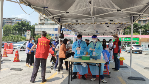 “请您在这里排队,先扫‘粤核酸’二维码进行登记,不用着急,只要排队就能够验核酸。”巴士集团二分公司党员贺文祎耐心地指引来检测的人们,对于不熟悉操作手机的人,他细心地一步一步指导,或者帮忙填报。
