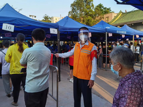 近日,广州疫情防控形势严峻反复,番禺区于4月9-10日进行了两次全区大规模核酸检测工作。这两天,林俊峰和王桂萍白天忙完日常工作后,便积极响应所属镇村的号召,主动投身到大规模核酸采集志愿服务中。在现场,总能看到夫妻俩忙碌的身影,他们坚持早来晚走,协助工作人员布置现场、维护秩序,帮助群众扫码、核对身份信息、提示做好个人防护、协助解决应急问题等,让全员核酸采样工作平稳有序进行,为疫情防控工作贡献力量。