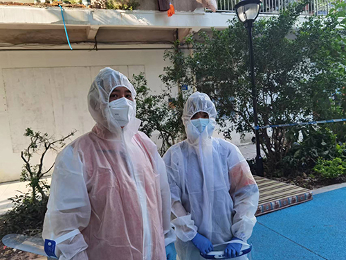 这不是他们夫妻俩第一次支援社区抗疫工作。2021年5月,广州本土疫情暴发,越秀区开展全员核酸检测工作,何智骞便立刻响应号召,前往社区报到,协助社区开展检测工作。妻子小慧看到丈夫和其他志愿者一起奔走忙碌,身上的衣服都被汗水浸湿了也没能来得及擦一把汗,她马上报名,成为一名志愿者,为社区防疫出力。今年3月,疫情防控态势复杂,何智骞夫妻俩一起申请“出战”,马上报名,成为第一批下沉支援社区的志愿者。