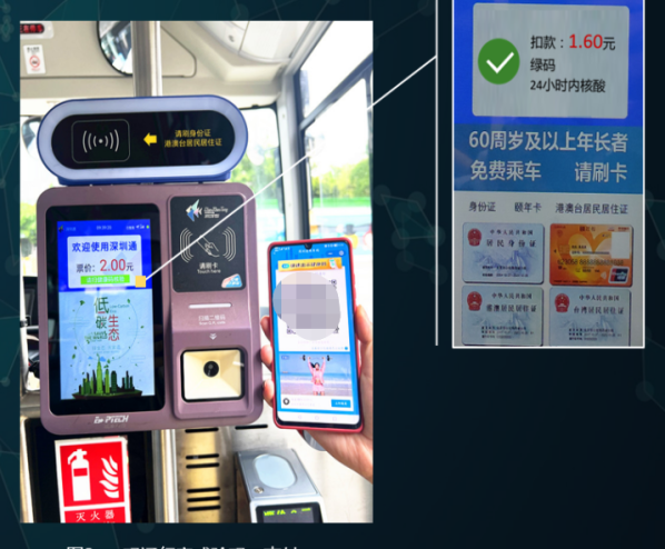 上车前提前打开已实名的“深圳通”乘车码,上车后在“电子哨兵”上嘀的一声,就能实现「乘车支付+核酸检测信息语音播报+健康码状态信息语音播报」,1秒内同步完成刷码乘车与健康信息验证。