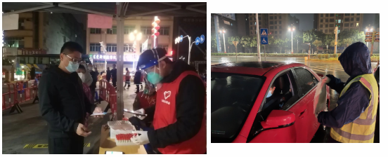 同样家在大朗封控区内的员工陈俊彬,年前连续坚守7轮核酸检测,协助开展核酸检测队伍分流疏导、秩序维护、信息登记以及深夜驻守封村路口查验粤康码。近期,他的身影又出现在了社区疫情防护一线,在大朗抗疫的28天里,他听从组织安排,承担起配送物资、统计后台数据以及挨家挨户通知商家建立公共场所粤康码等工作,有时还需通宵值守封控点的出入口。