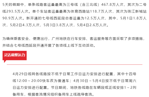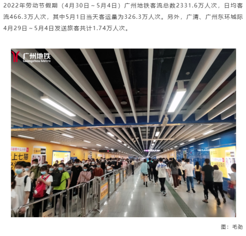五一假期广州地铁运客2331.6万人次