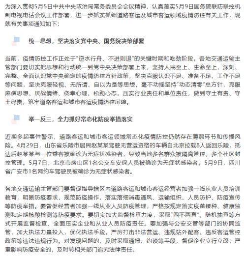 关于进一步抓实抓细道路客运及城市客运领域新冠肺炎疫情防控有关工作的通知