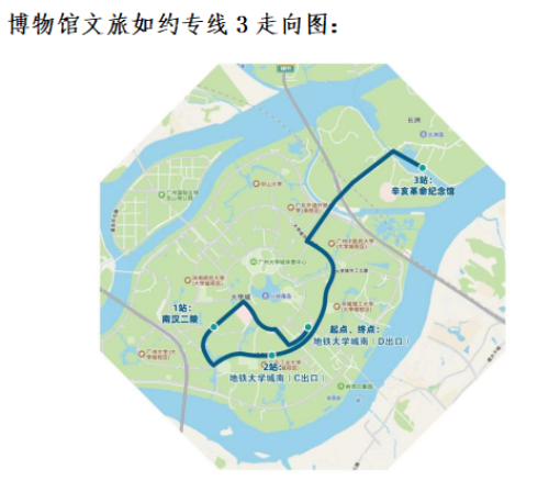 专线3为学贯千年线,从大学城南地铁站出发,“一站千年”,在南汉二陵博物馆领略南汉历史文化、探索广州近代考古成果,在辛亥革命纪念馆缅怀辛亥革命先驱、重温先辈走过的红色岁月。