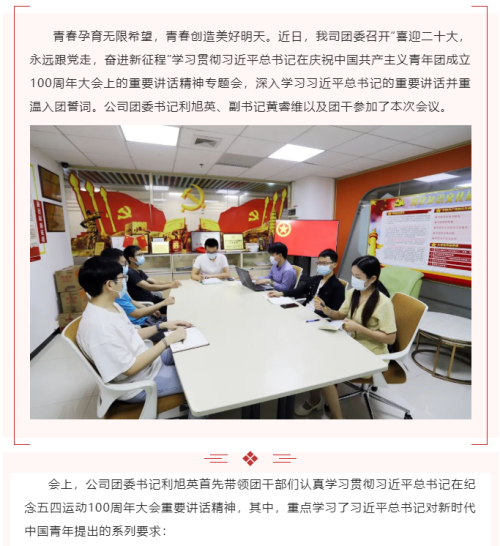 我司团委组织专题会议学习习近平总书记在庆祝共青团成立100周年大会上的重要讲话精神