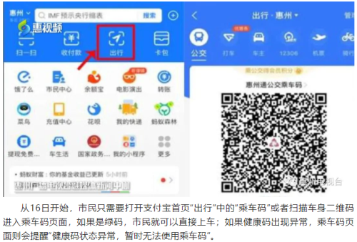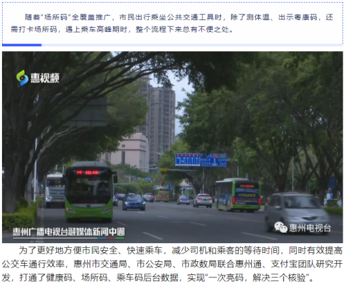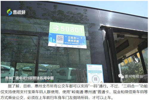 惠州实现乘车健康场所“三码合一” 公交出行只需刷码一次