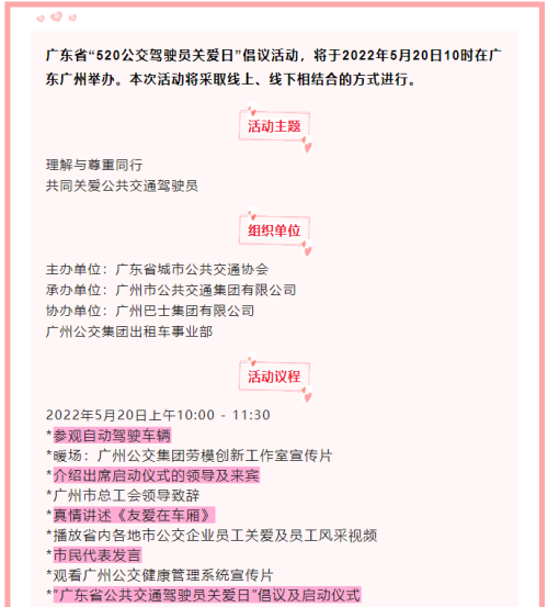 广东省“520公交驾驶员关爱日”倡议活动
